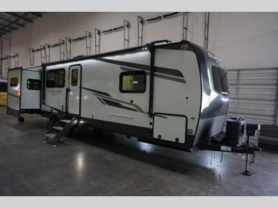 Sleeps 6 Slides 2 Length 35 ft 4 in Ext Width 8 ft Ext Height 11 ft 2 in Hitch Weight 930 lbs Dry Weight 7873 lbs Cargo Capacity 2076 lbs Fresh Water Capacity 54 gals Grey Water Capacity 45 gals Black Water Capacity 45 gals Furnace BTU 35000 btu Available Beds Queen Refrigerator Type 12V Cooktop Burners 3 Number of Awnings 2 LP Tank Capacity 20 lbs Water Heater Capacity 6 gal Water Heater Type Quick Recovery Gas/Electric AC BTU 15000 btu TV Info LR Smart TV Awning Info 19' Power w/Adjustable Rain Dump & LED Lighting Axle Count 2 Number of LP Tanks 2 Shower Type Radius Electrical Service 50 amp Similar Travel Trailer Floorplans